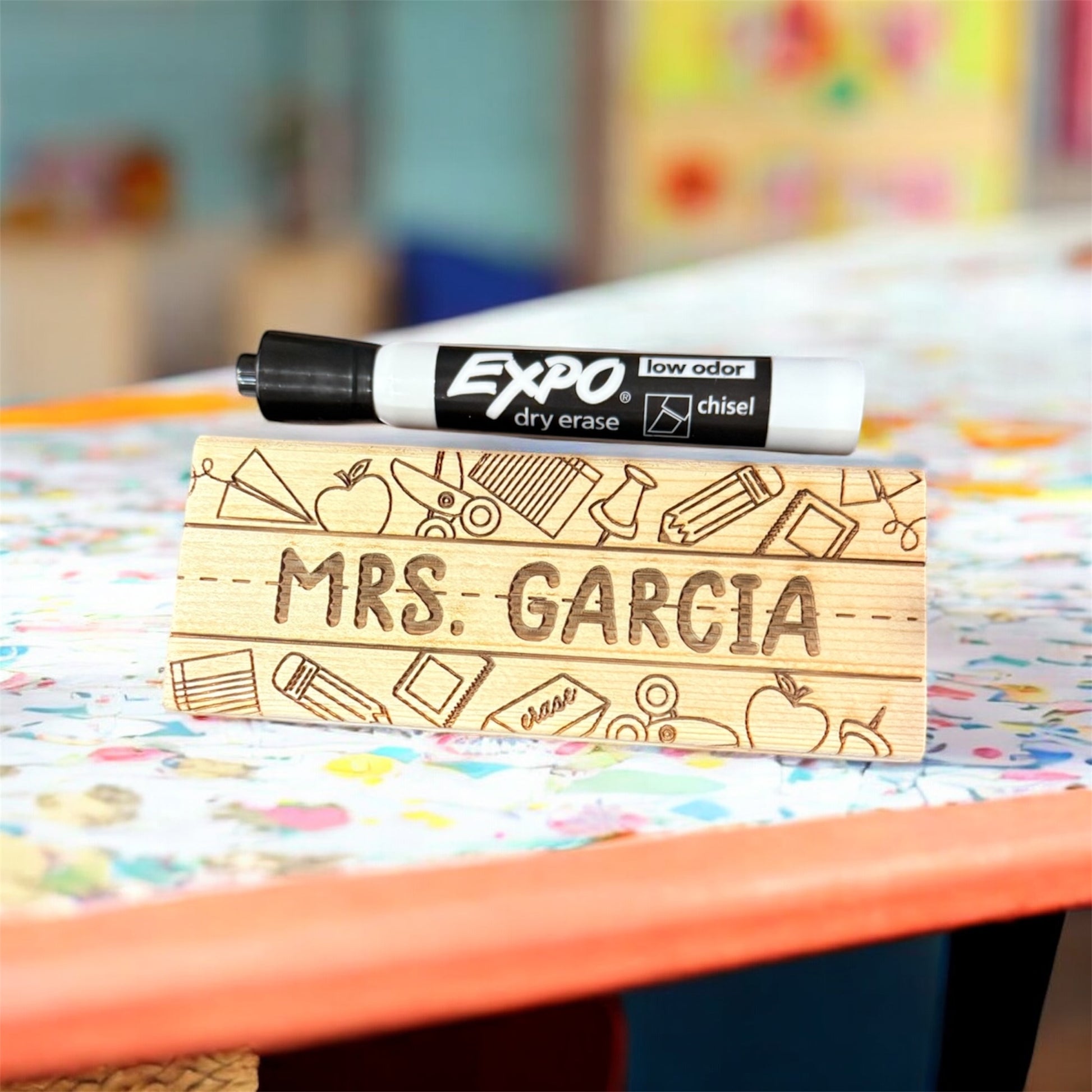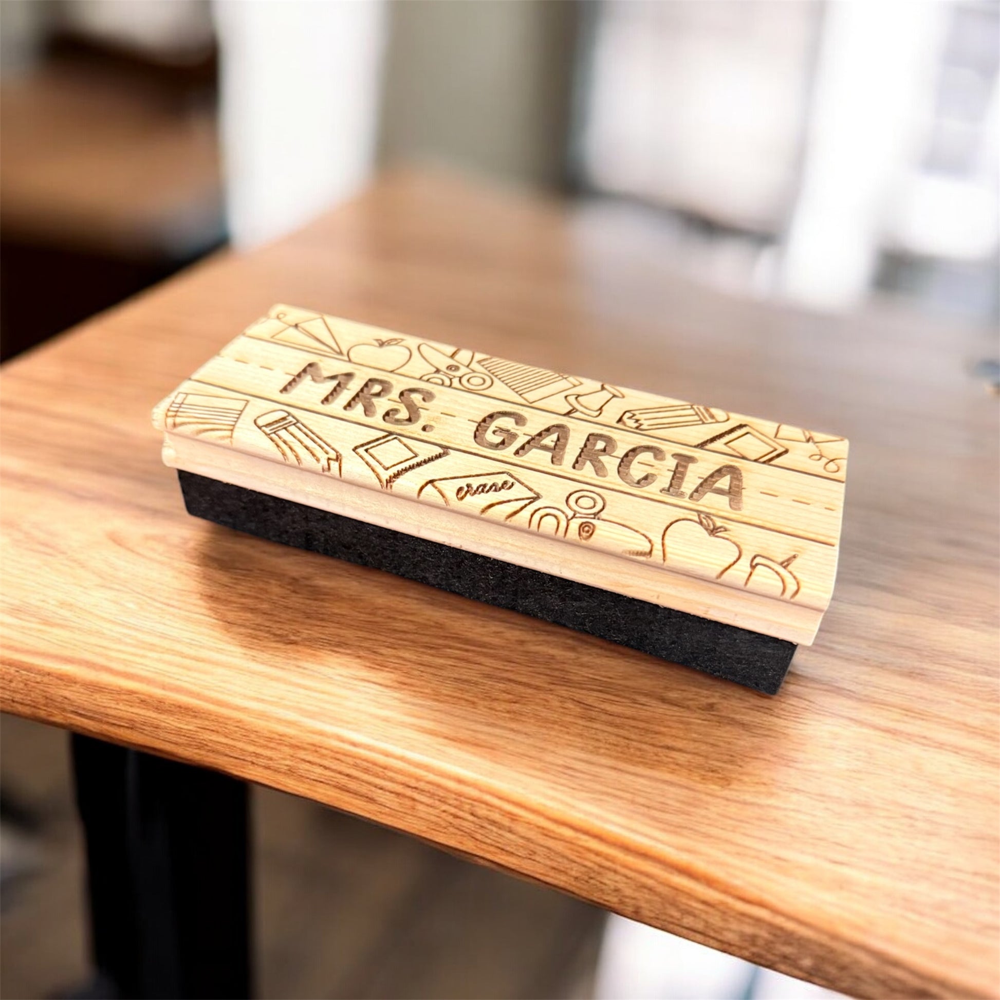 Personalized white board eraser. Will come with a black expo marker. Two designs to choose from.